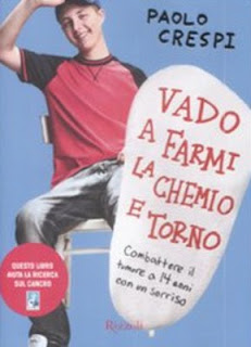 Un titolo interessante che vi propongo è Vado a farmi la chemio e torno. Combattere il tumore a 14 anni con un sorriso. di Paolo Crespi edito dalla Rizzoli. Suddiviso non in giorni, come un classico diario, ma per titoli che introducono all’argomento, questo libro è stato scritto dal protagonista, tutt’ora in lotta con le difficoltà che una patologia simile comporta, ma senza autocompatimenti. La scrittura è basilare, forse a tratti troppo semplice, ma il suo pregio sta proprio in questo: è l’autentico diario di un ragazzo di quattordici anni e ogni giovane entra in empatia non appena vede una scrittura che potrebbe essere la propria e un adulto non può che comprenderne l’autenticità. A rendere ancor più speciale questo libro è il fatto che esiste un blog in cui Paolo Crespi e i suoi famigliari proseguono il racconto di quanto stanno vivendo. L’indirizzo del blog è qui. Non molto aggiornato per i molti impegni che la famiglia di Paolo deve affrontare, è di grande interesse la lettura dei commenti dei giovani lettori, sempre appassionati. E che ci fanno capire che nei sentimenti dei giovani c’è molto di più di quello che spesso pensiamo.