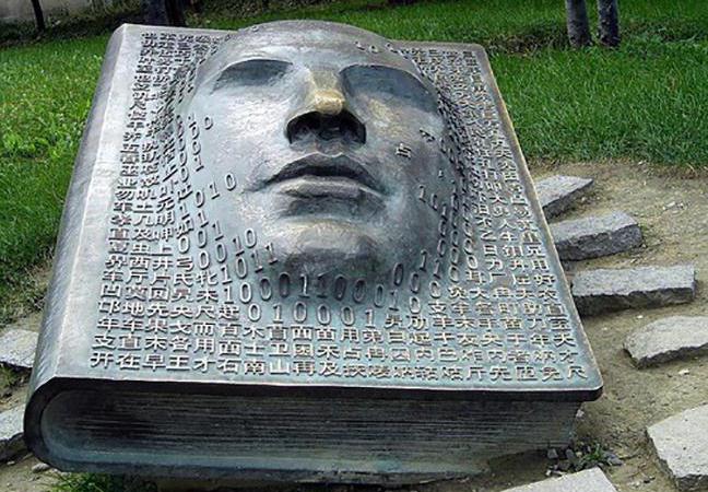 Si tratta di un gigantesco libro in bronzo situato nel campus dell’Università di Tsinghua a Pechino. Sulla copertina sono citati personaggi e numeri cinesi. Dal centro, emerge un viso umano. Nei siti che mostrano questa particolare creazione si trova spesso citato un significato, che potrebbe essere quello voluto dall’artista o dal committente: “Se un bambino nasce dal grembo materno, allora la persona come tale nasce grazie ai libri”.